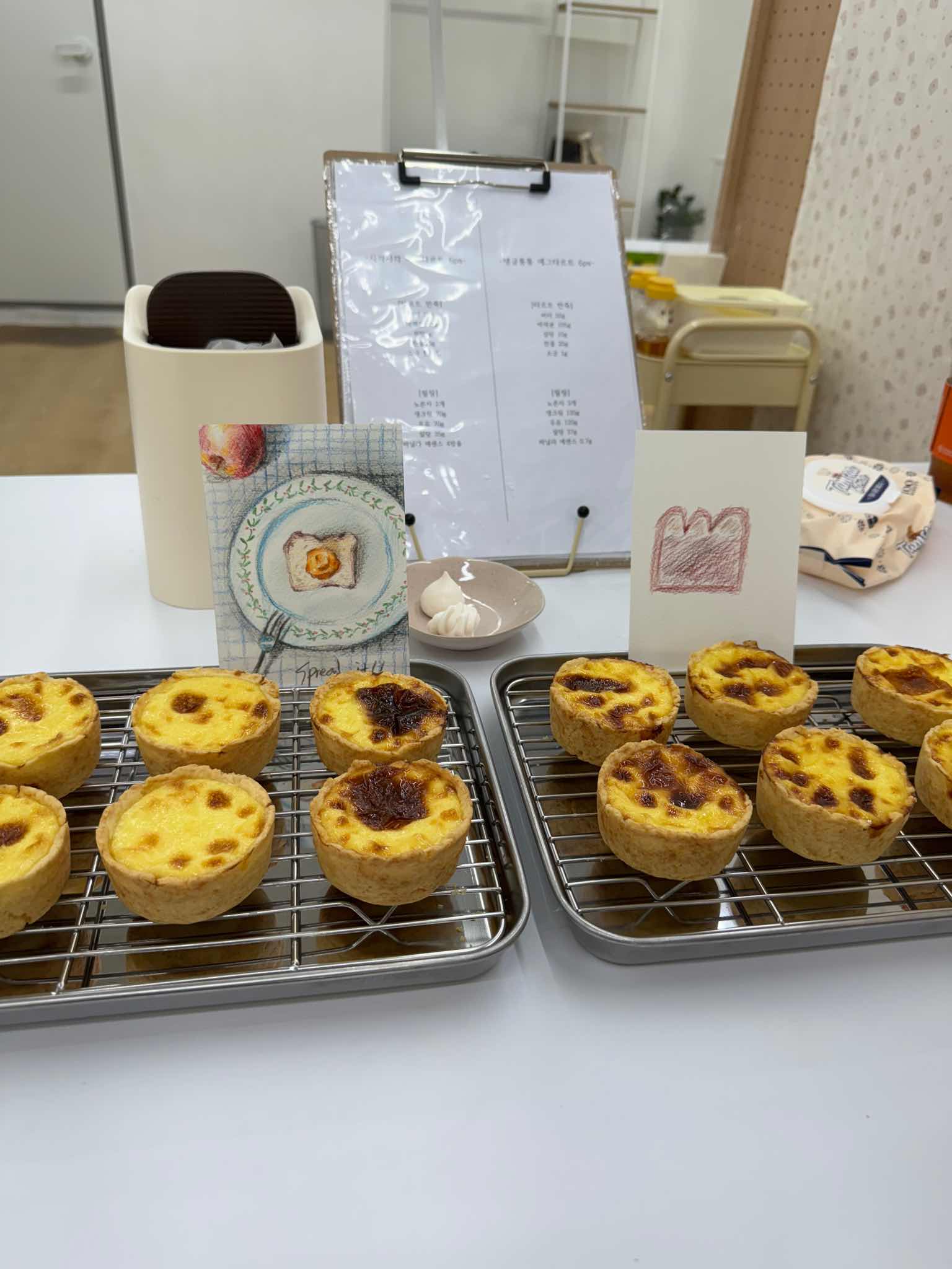 첫 베이킹을 친구들과 함께 했는데 소꿉놀이 하는거 같고 친구들과 소중한 추억도 만들어진거 같아 정말 좋았어요! 하나하나 차근히 쉽게 설명도 해주시고 베이킹 하는 공간도 깨끗하고 편안한 분위기 속에서 재밌게 만들었네요🧸 완성된 에그타르트 맛도 너무 맛있어서 더 뿌듯했던거 같아요🙂 완전 추천입니당!