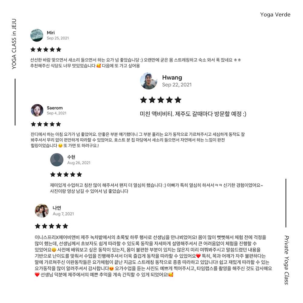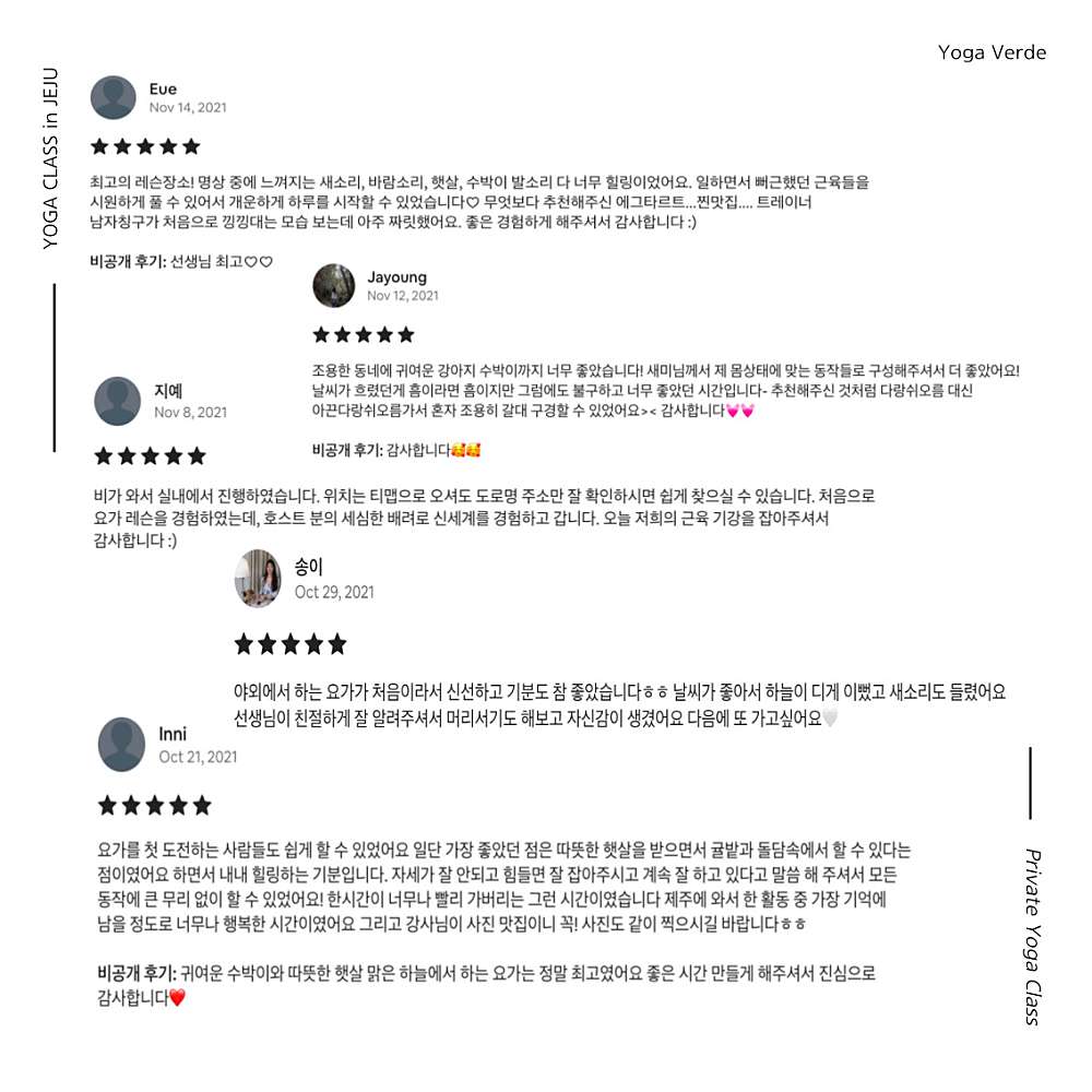 2021년부터 제주 요가 클래스를 운영중인 요가 베르데입니다.